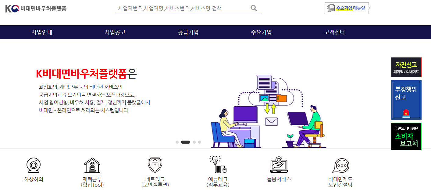 위의 설명과 같이 비대면바우처사업은 정부가 2020년부터 실시한 사업으로, 공급기업에게는 비즈니스 사업의 성장 그리고 수요기업에게는 디지털 역량 및 생산성 향상을 강화하는 목적에 있고,