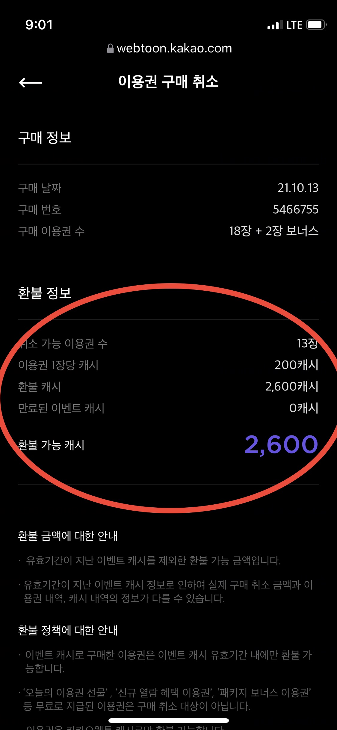 둘다 진행을 하니 총 4000원의 캐쉬가 환불 됐네요!