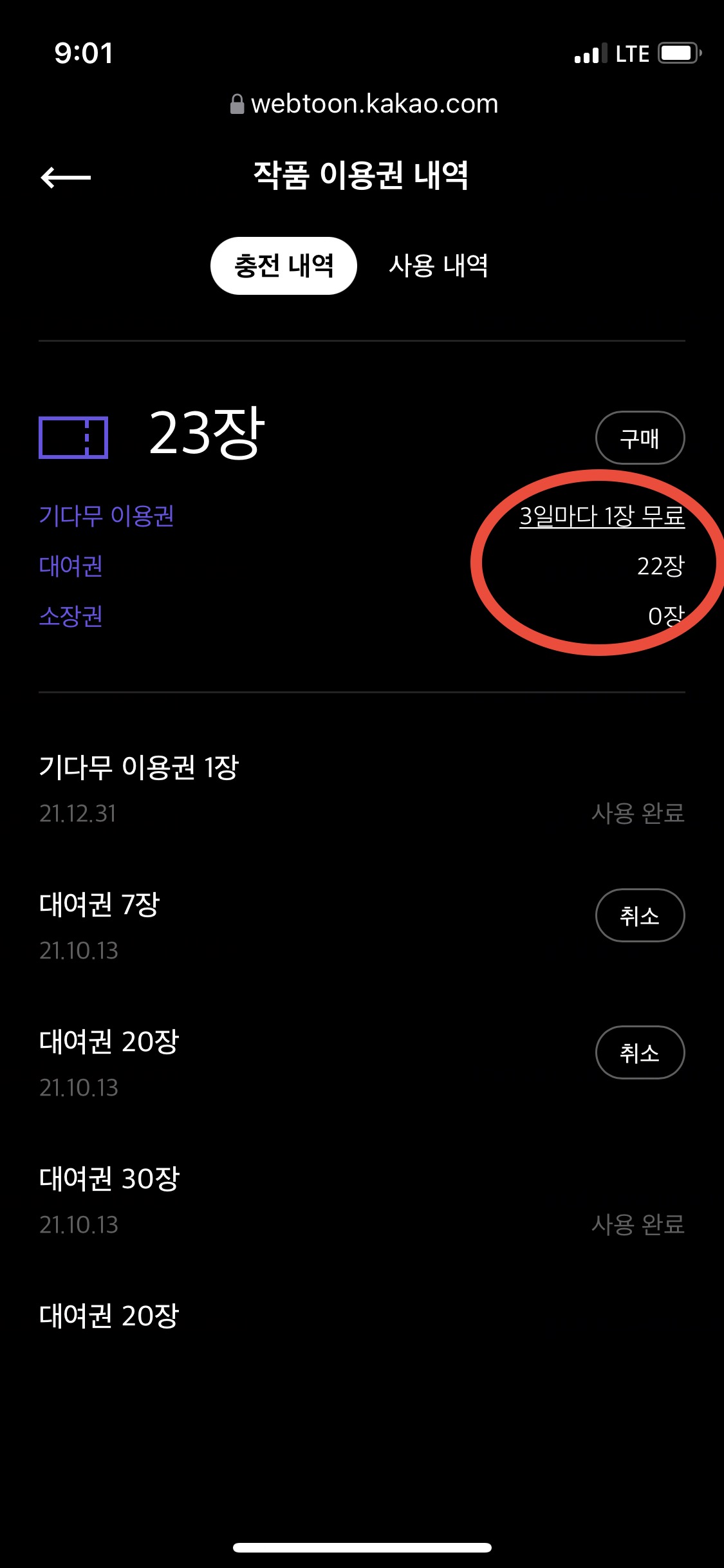 23장중 한 장은 기다무로, 환불 받지 못하는 이용권이었군요.