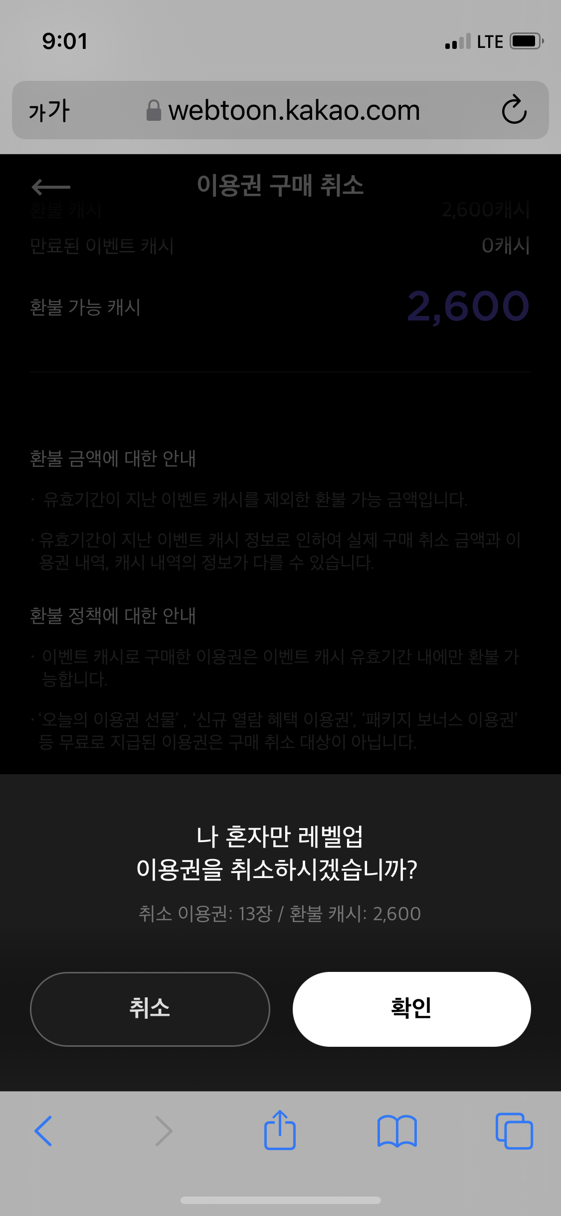 둘다 진행을 하니 총 4000원의 캐쉬가 환불 됐네요!