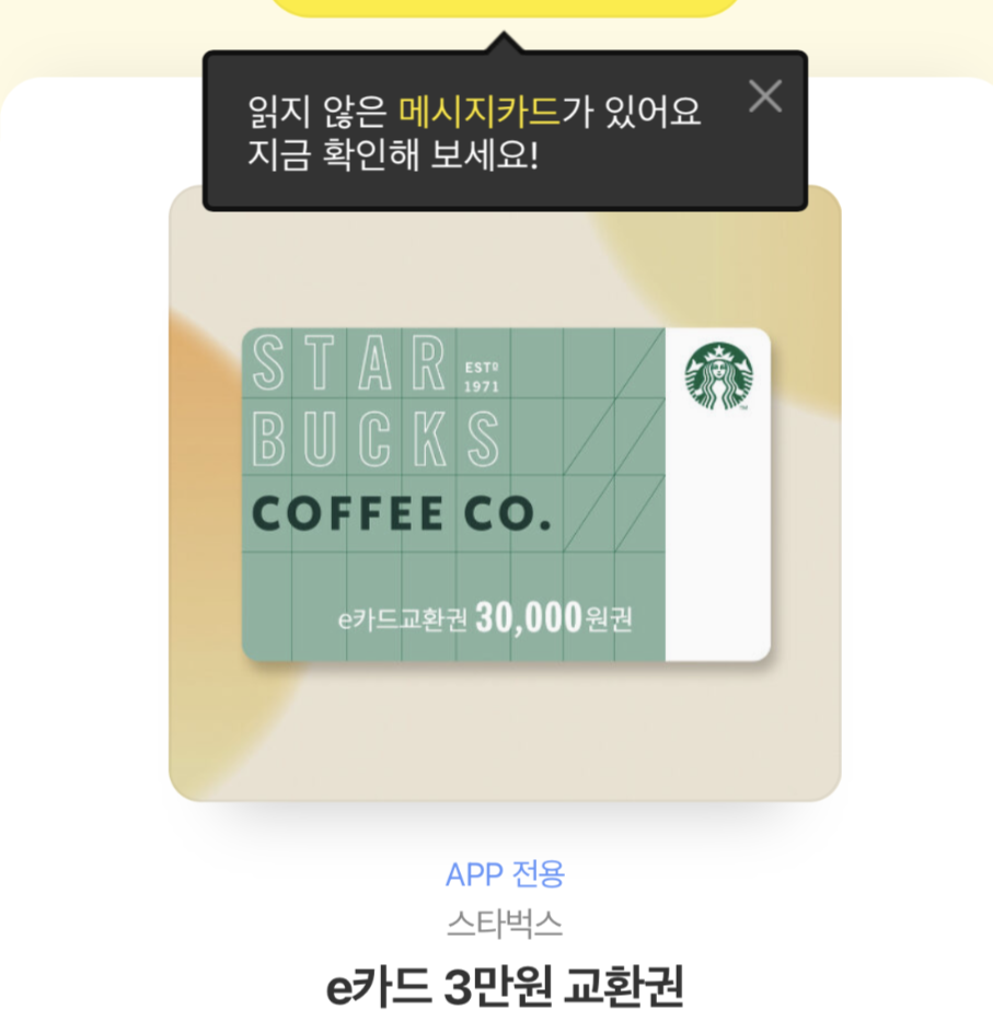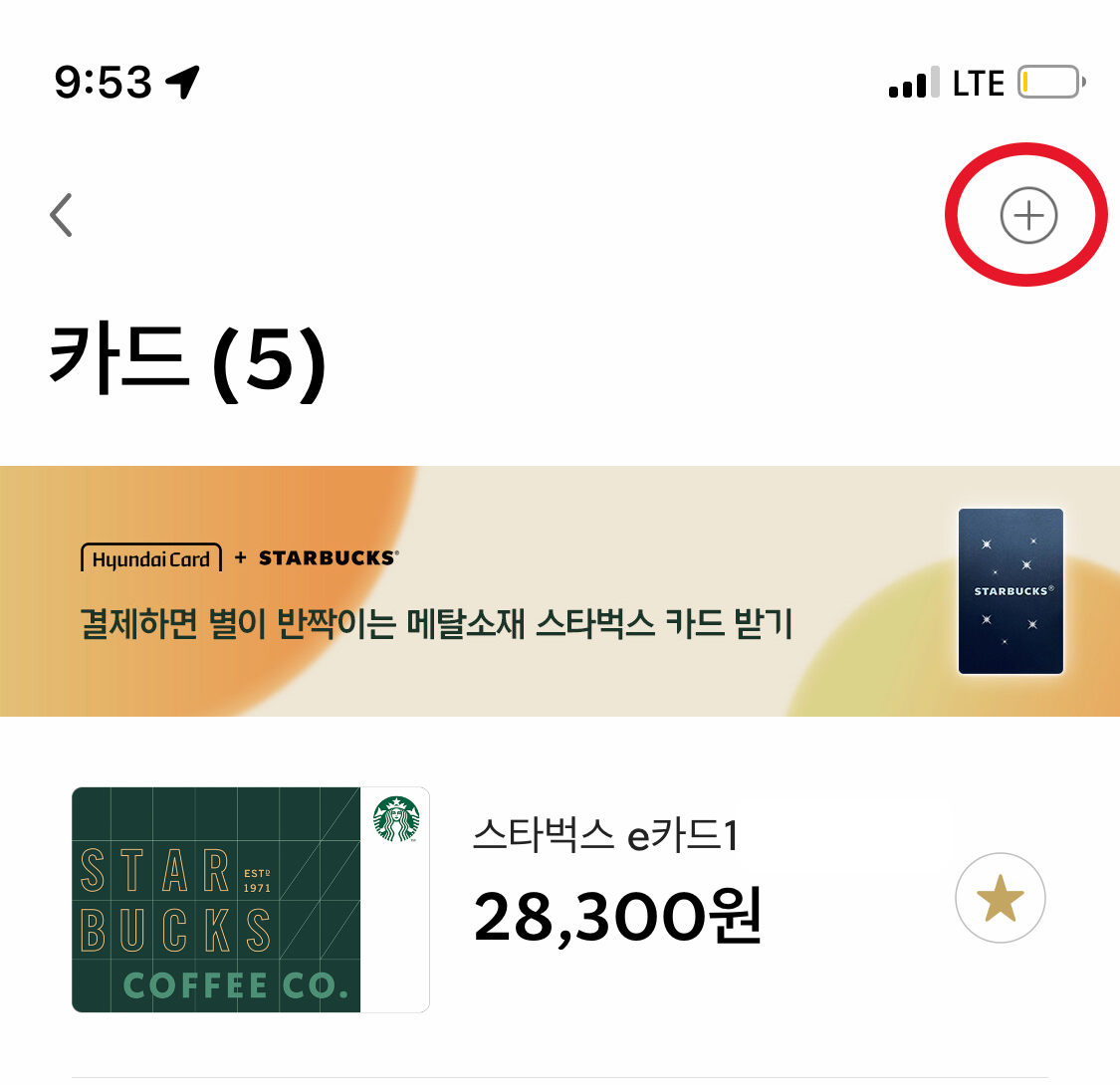 그중에 스타벅스 E 카드도 있었는데, 이걸 어떻게 앱에 넣는지 몰라서, 파트너분께 여쭤보니 친절하게 방법을 알려줬다.