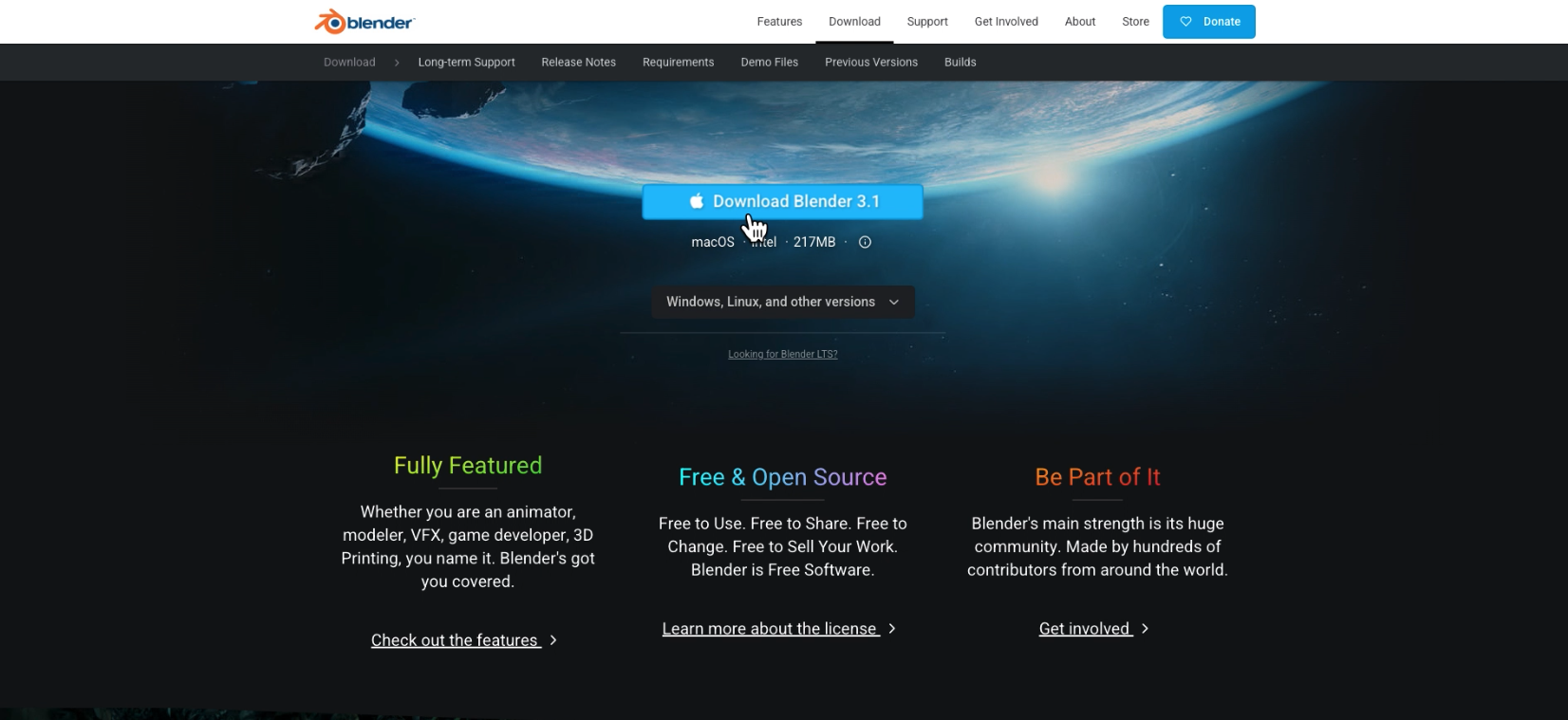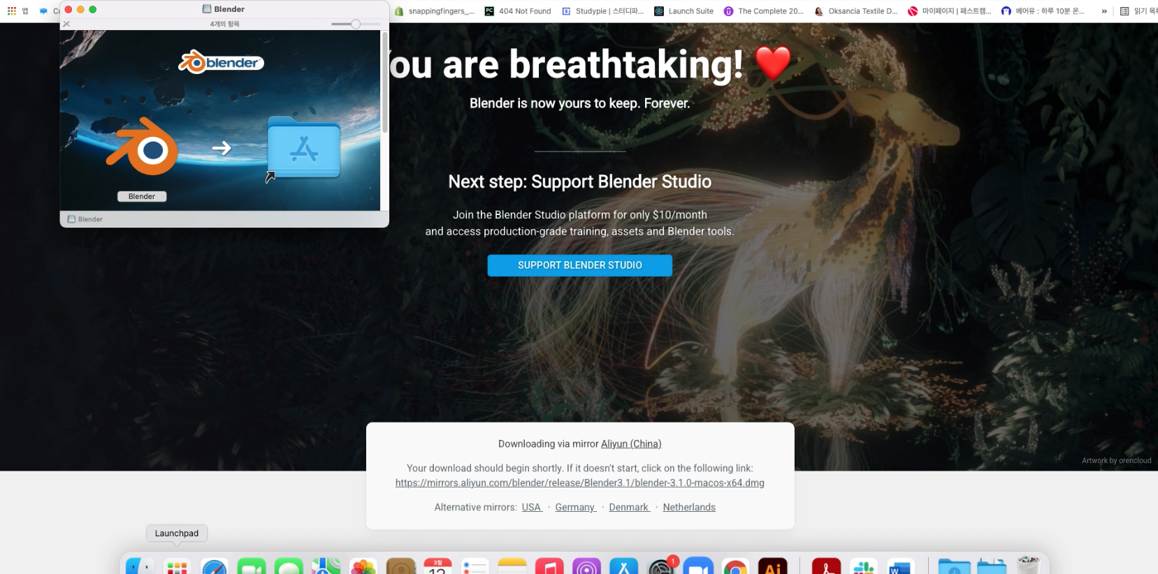 먼저 블렌더 사이트로 들어가서 다운로드 블렌더를 누른다
