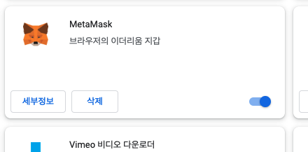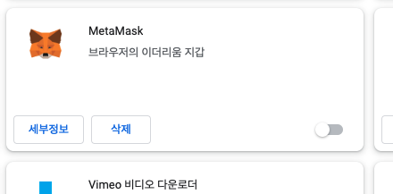 확장프로그램에서 이처럼 메타마스크가 켜져있으면,