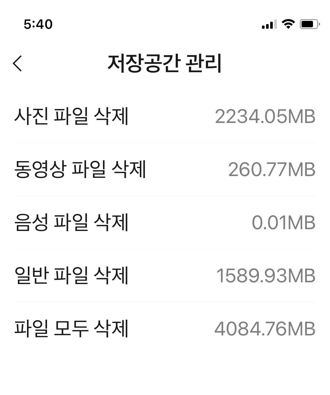 이 옵션같은 경우 파일만 남기거나, 영상만 남기거나, 사진만 남기거나 할 수 없기 때문에, 필자가 위에 말한 방법으로 필요한 것만 지우는 것이 훨씬 유연하게 파일 관리를 할 수 있다.
