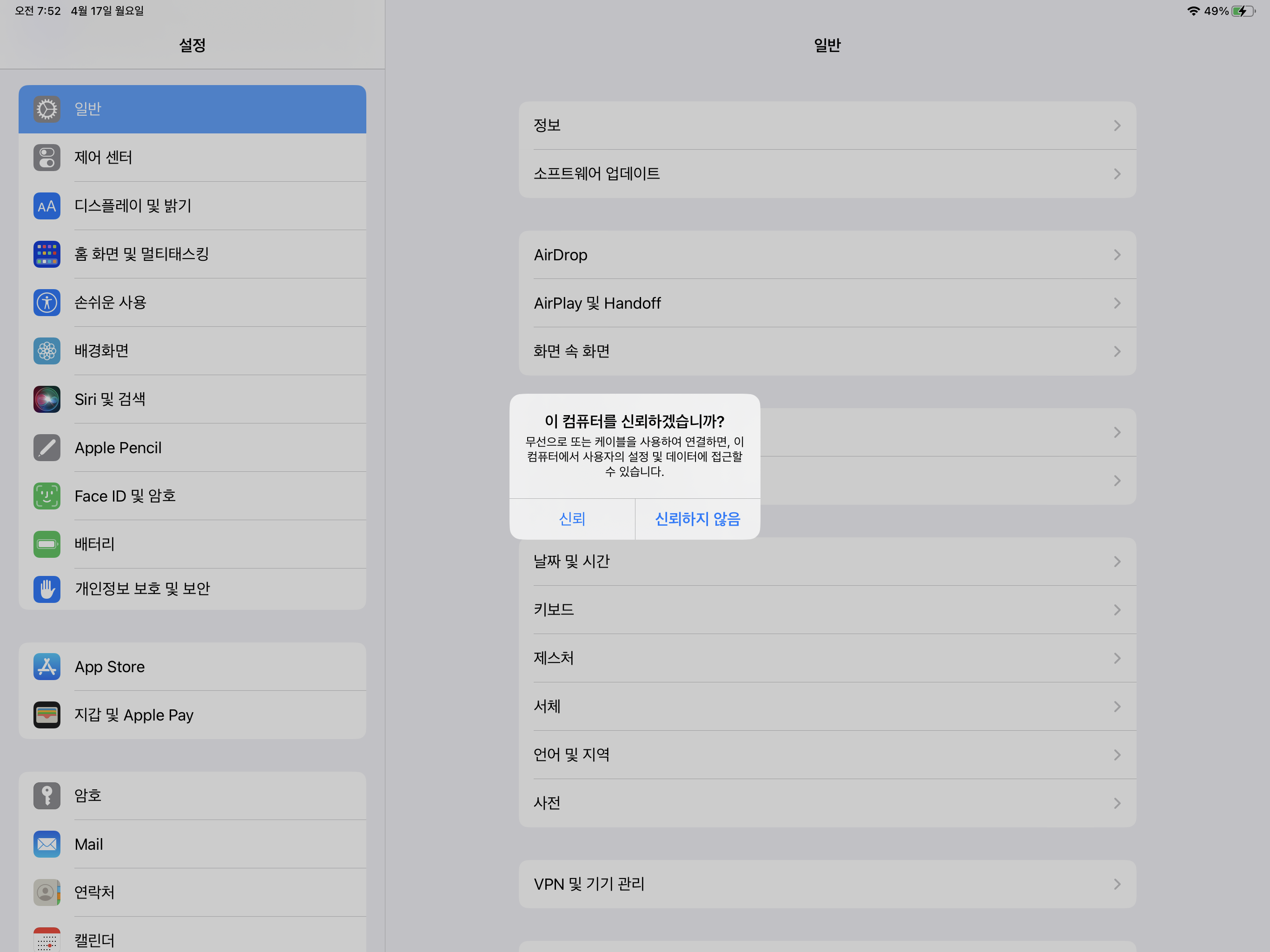 또한 다시금 확인 한건데, 처음 산 아이패드를 맥북에 사이드카, 키보드 및 마우스연결을 활성화 하려면 한 번은 C to C로 연결해서 신뢰를 해줘야 이 기능이 작동되는 것을 확인했다.