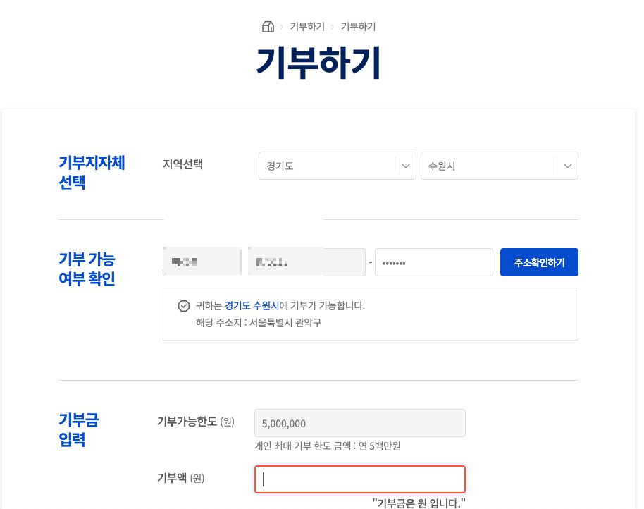 주의하실 점은 연간 기부 가능 금액은 500만 원 까지라는 부분이고 이것은 전체기부 금액을 뜻합니다!