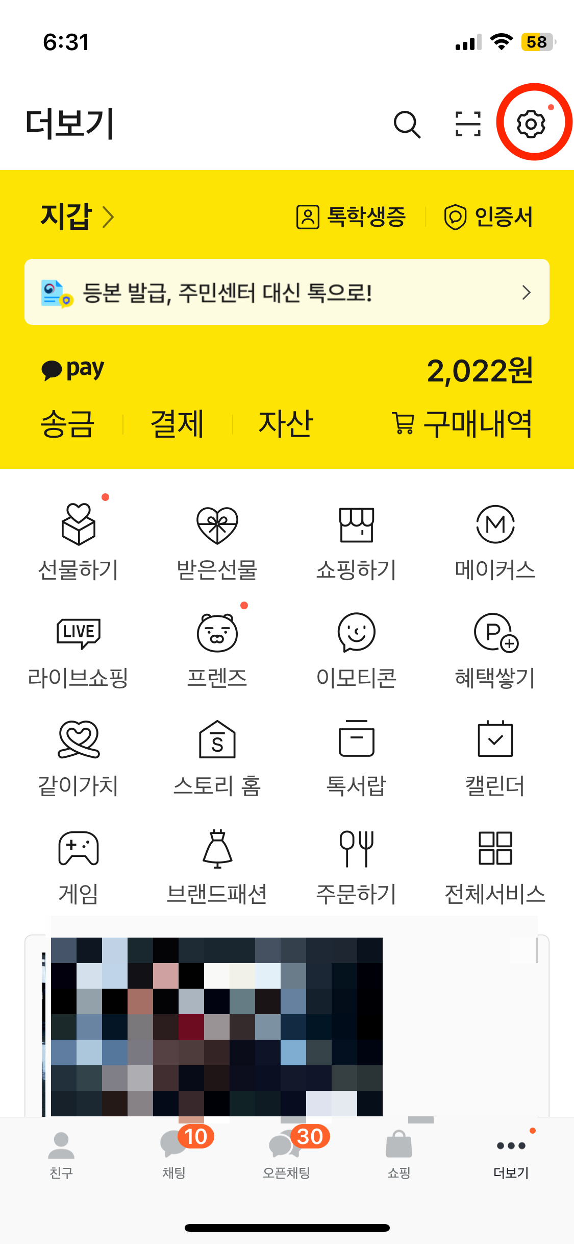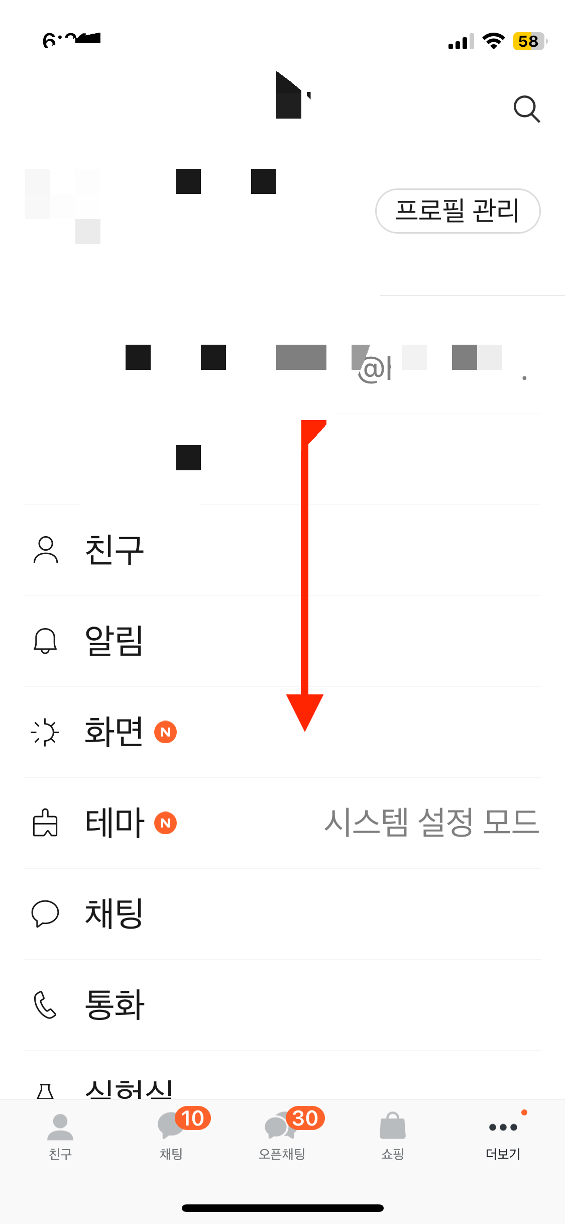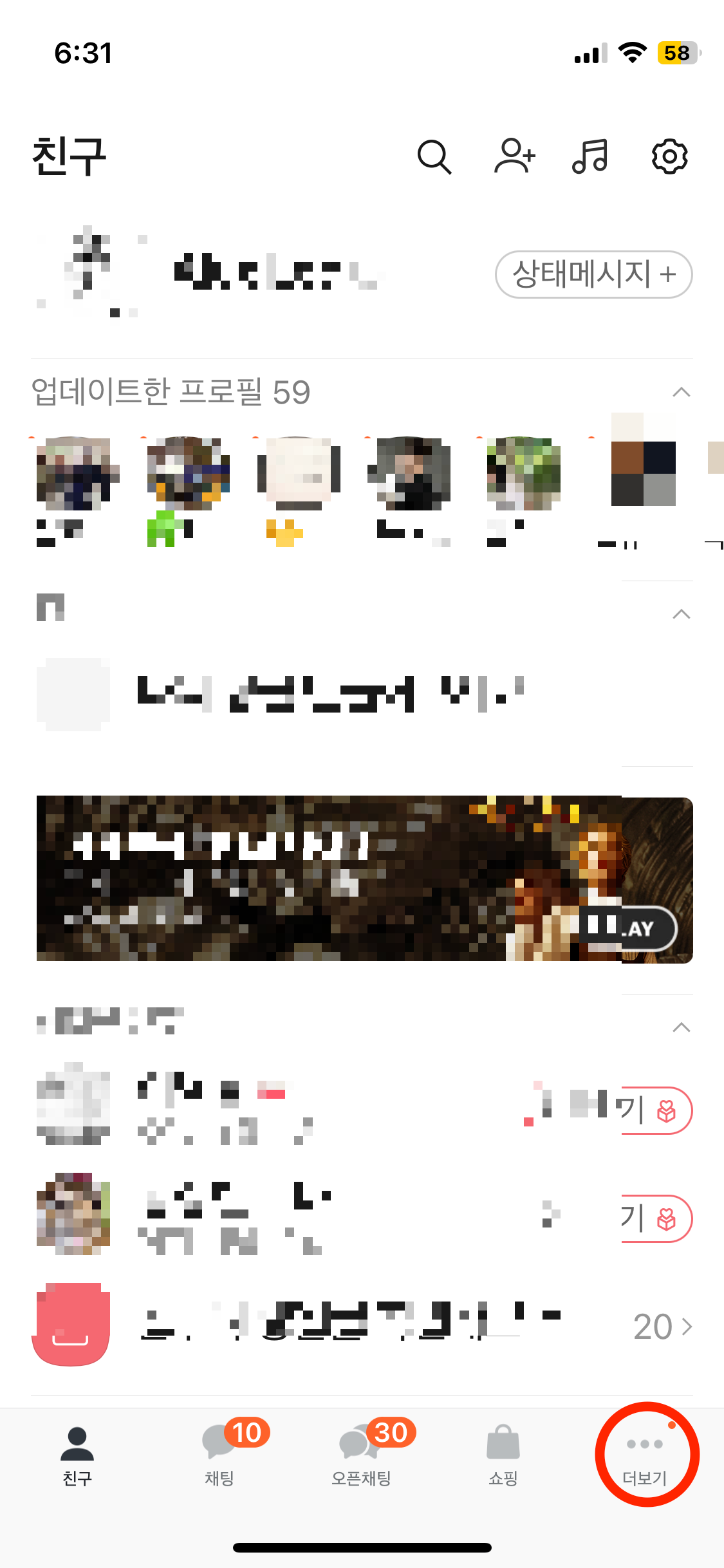 먼저 카카오톡을 접속하셔서 기본화면에서 오른쪽 아래 더 보기를 누릅니다.